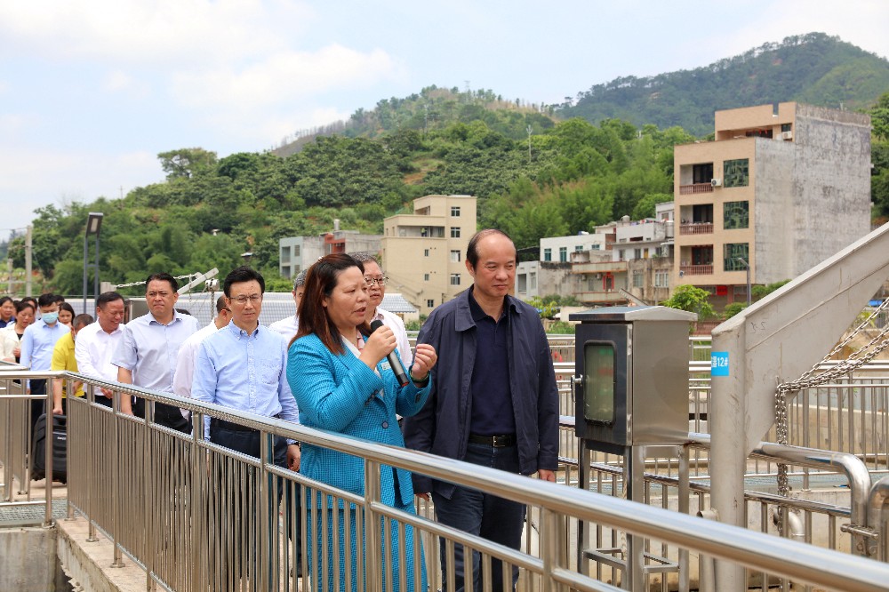 黄伟京一行到梧州市第一污水处理厂实地检查污水处理情况。