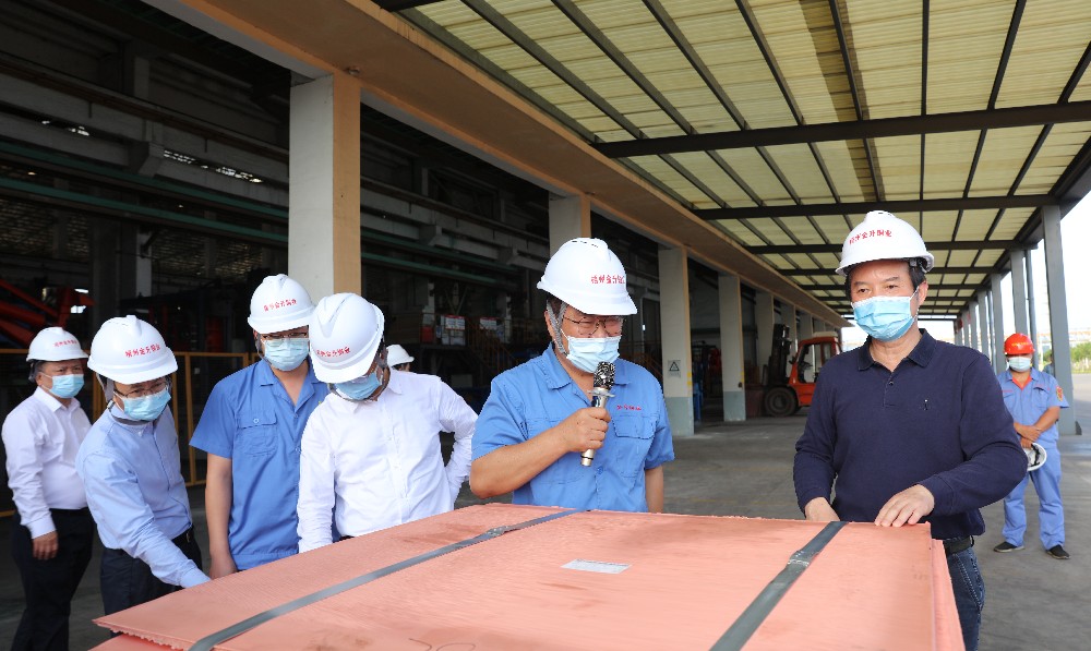 黄伟京一行到梧州金升铜业股份有限公司实地检查大气污染防治情况。