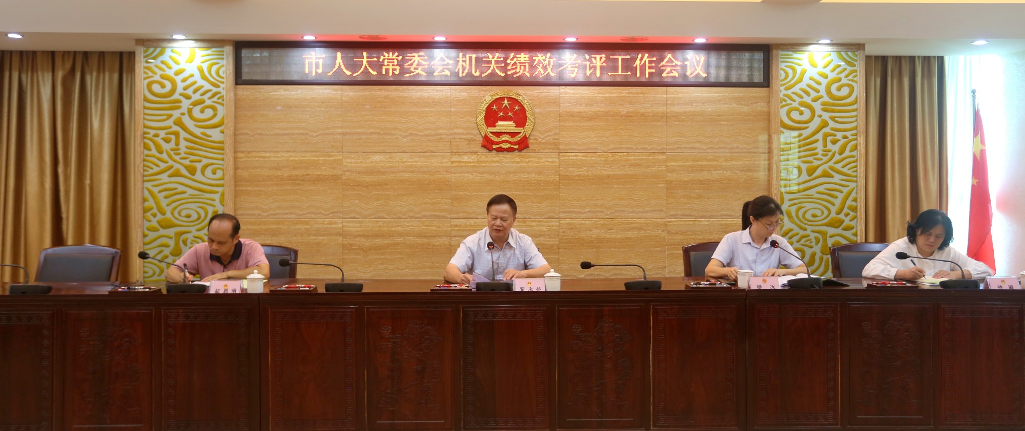 9月2日,市人大常委会召开机关绩效考评工作会议,部署下半年机关绩效考评工作任务,要求做细做实人大绩效考评工作。市人大常委会副主任黎永益出席会议并讲话,市人大常委会副秘书长梁冰、茹恩南、钟雁,以及各委(室)主要负责人和有关工作人员等参加会议。
