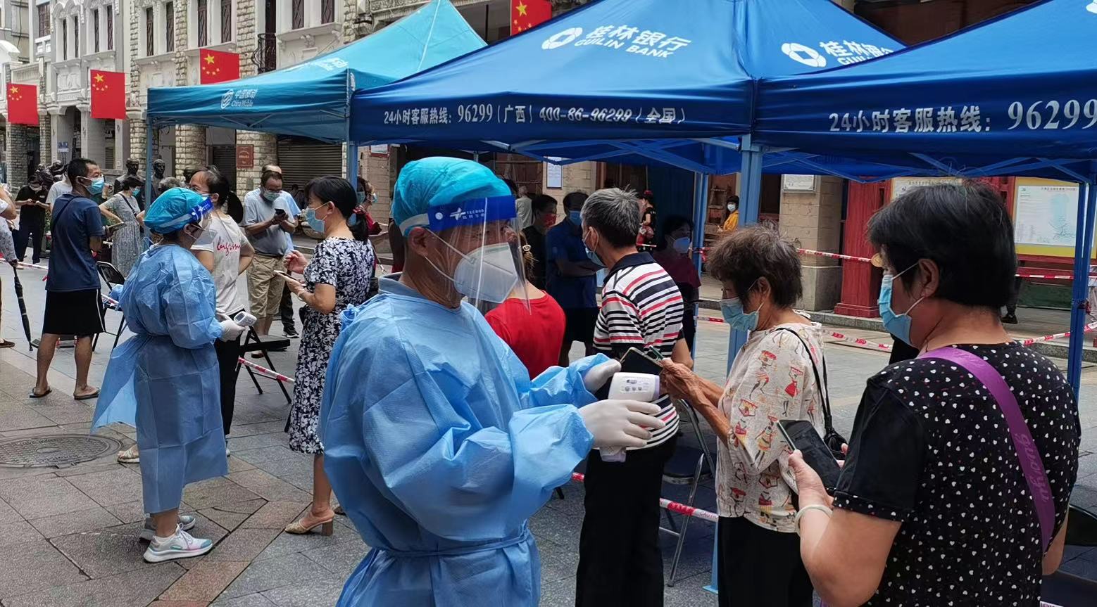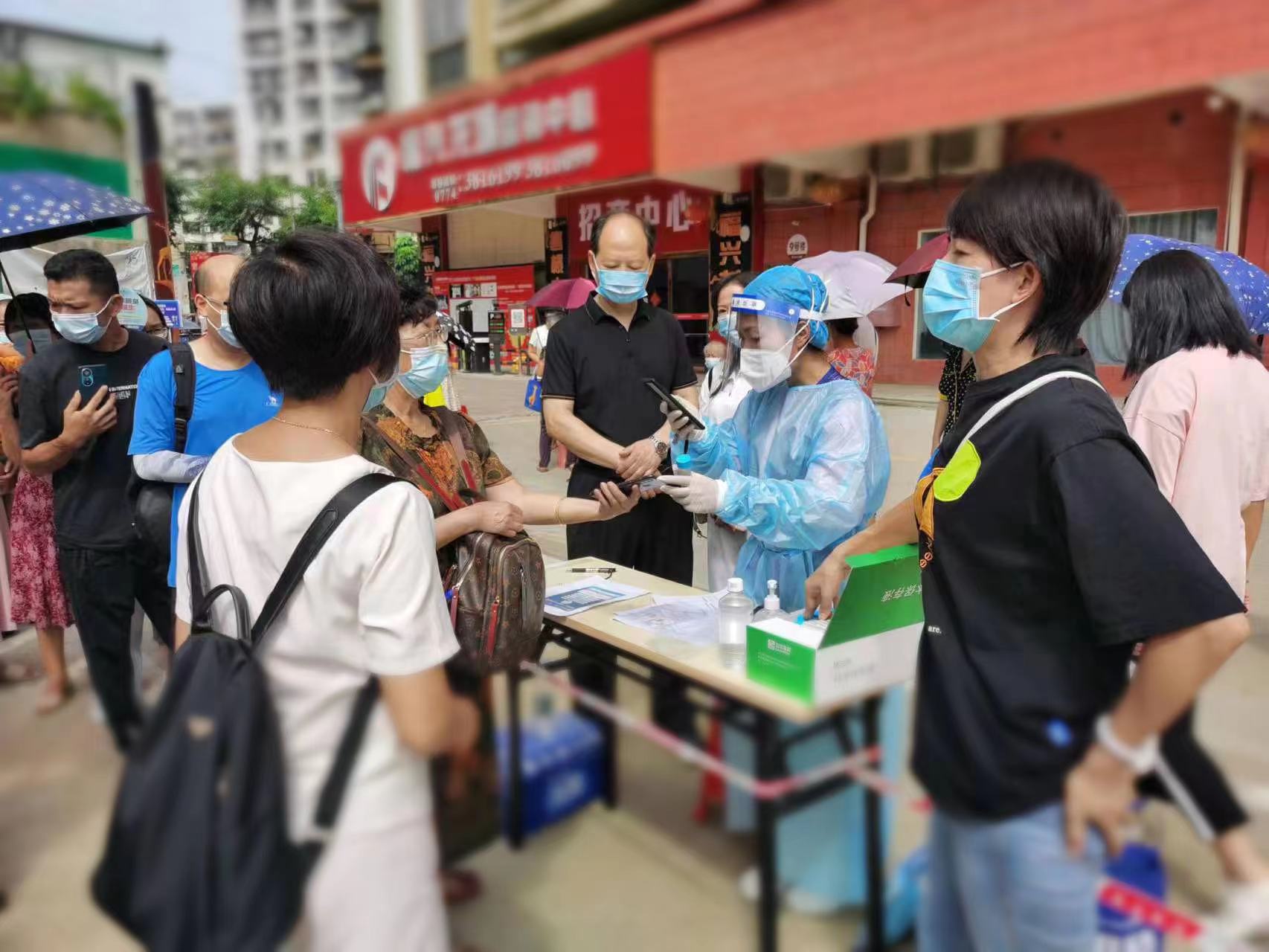 市人大常委会机关干部职工加入志愿者队伍,积极引导群众做好核酸检测工作。