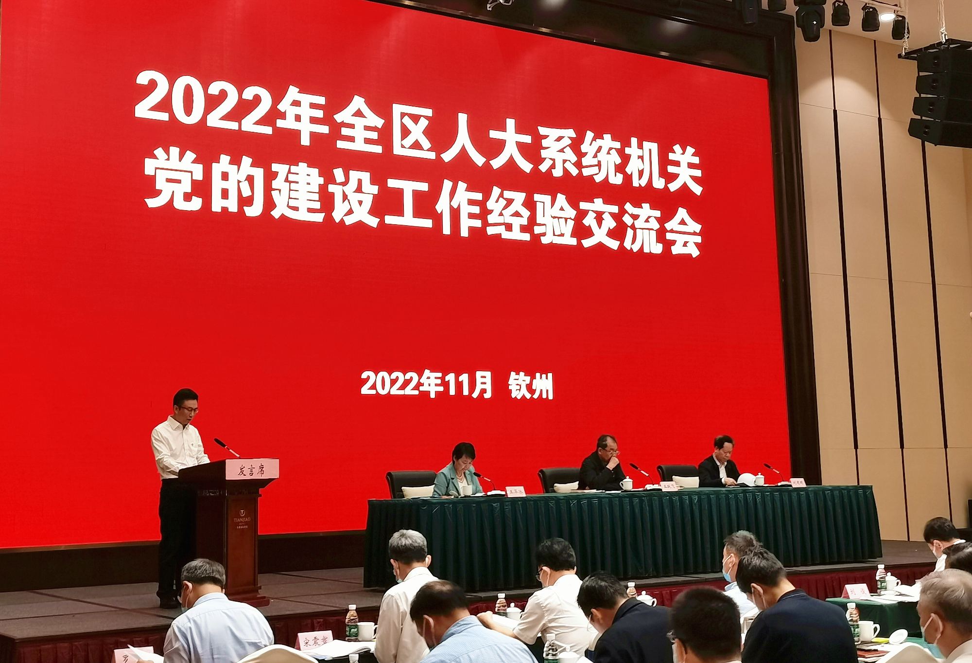 市人大常委会党组书记、主任黄中贤在全区人大系统机关党的建设工作经验交流会上作典型发言。 资料图