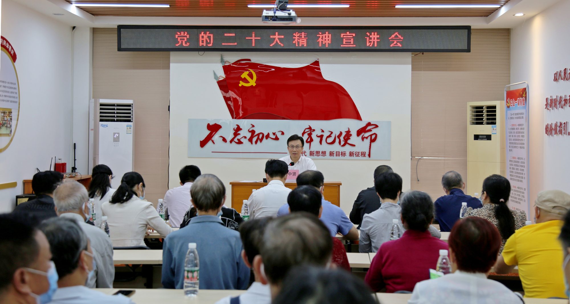 市人大常委会党组书记、主任黄中贤到万秀区城南街道南中社区,为珠玑小区党支部、骑楼大妈党支部的党员上党课,宣讲党的二十大精神。 黎洁巧 摄