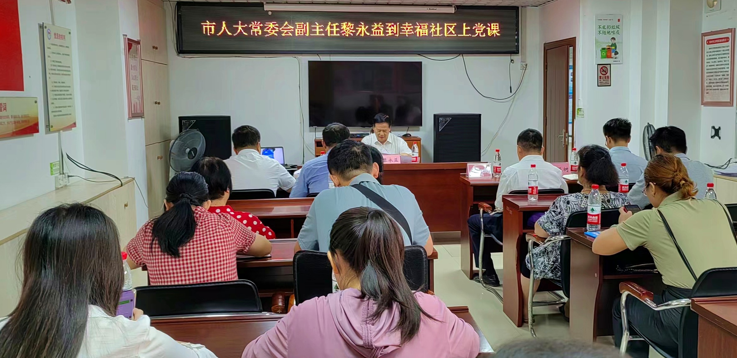 8月3日,市人大常委会副主任黎永益到长洲区幸福社区,指导创建全国文明城市工作并上党课。
