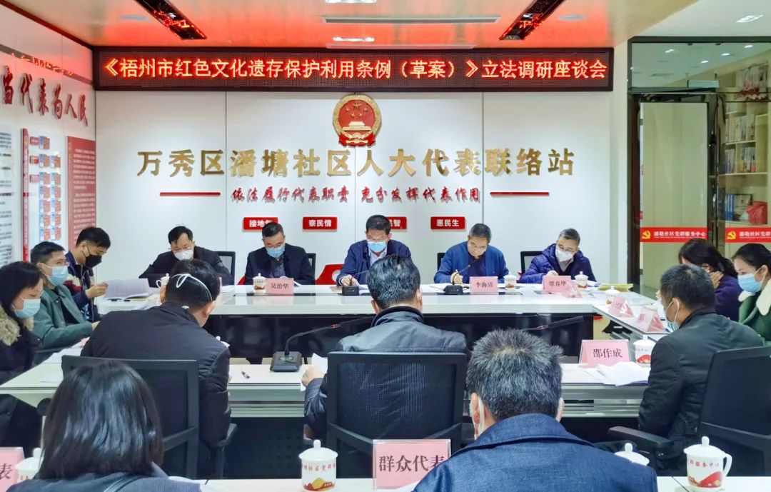 梧州市人大常委会调研组到基层立法联系点——万秀区潘塘社区开展《梧州市红色文化遗存保护利用条例(草案)》立法调研,召开座谈会征求意见 李秋燕/摄