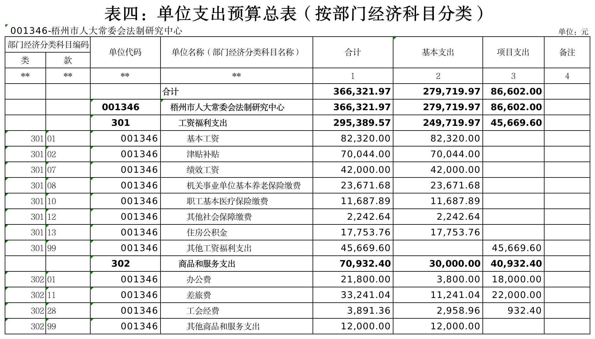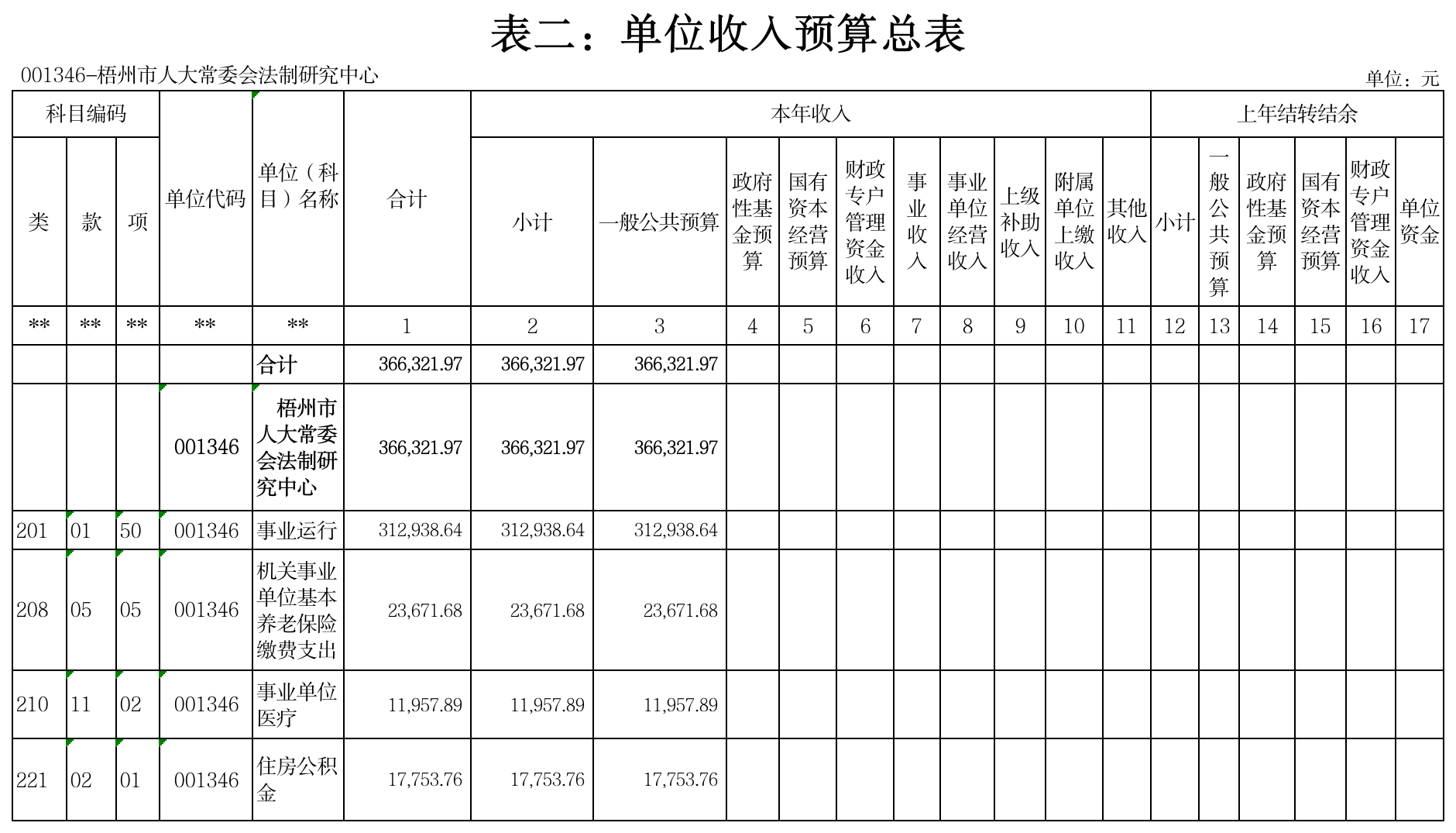 第四部分:梧州市人大常委会法制研究中心2021年单位预算报表(详见附件)