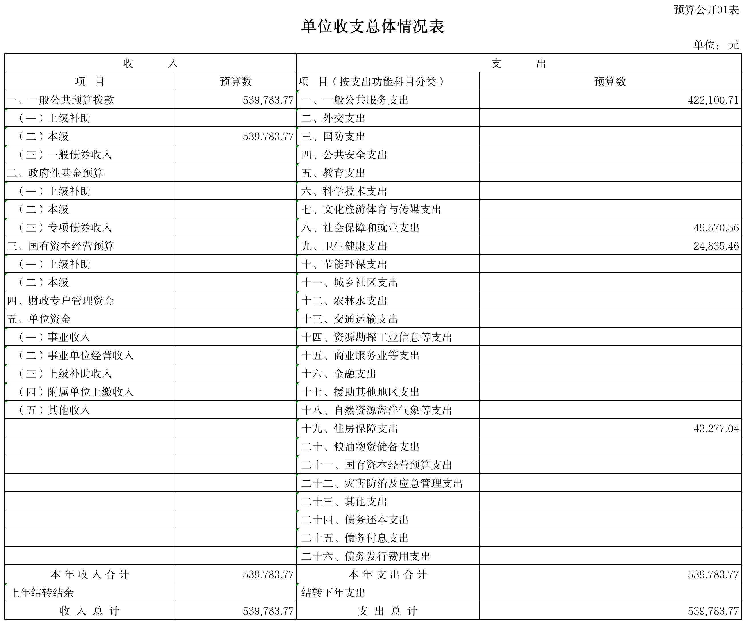 一、表1 单位收支总体情况表