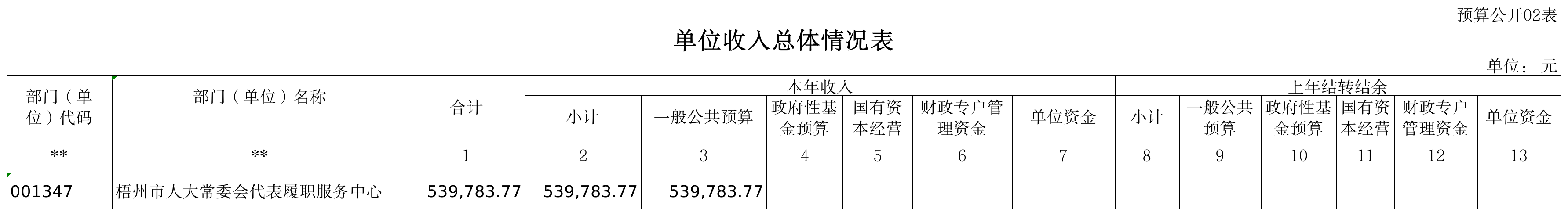 二、表2 单位收入总体情况表