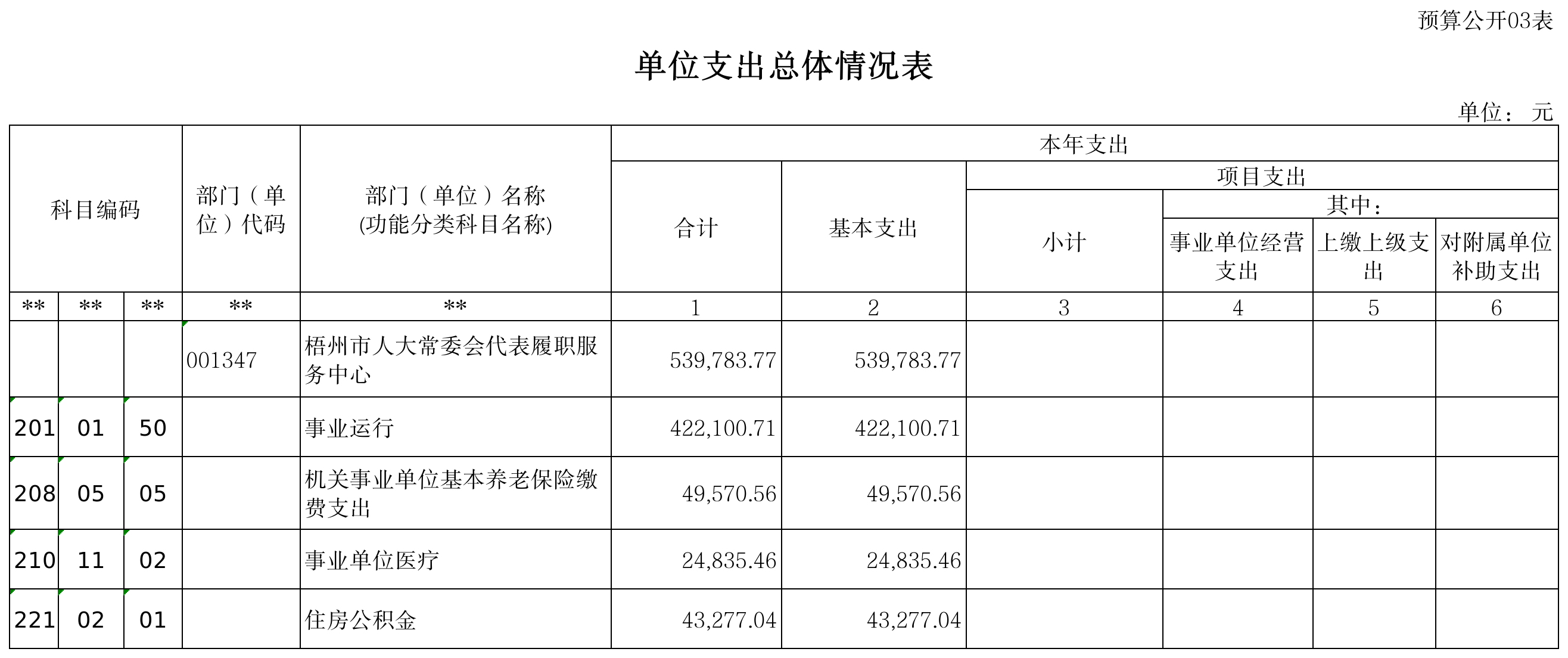 三、表3 单位支出总体情况表