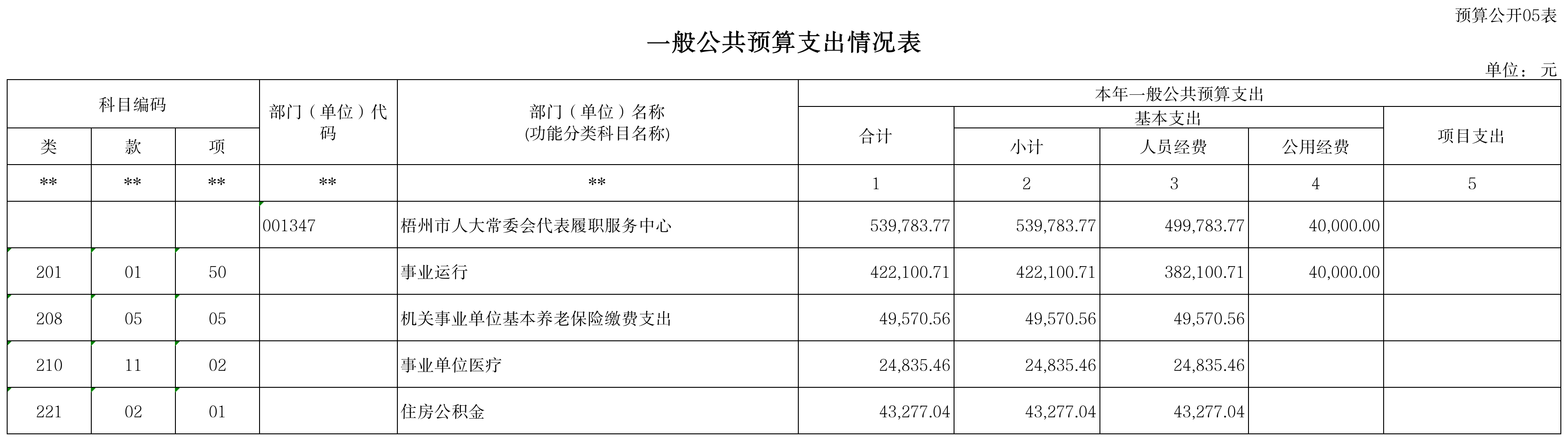 五、表5 一般公共预算支出情况表
