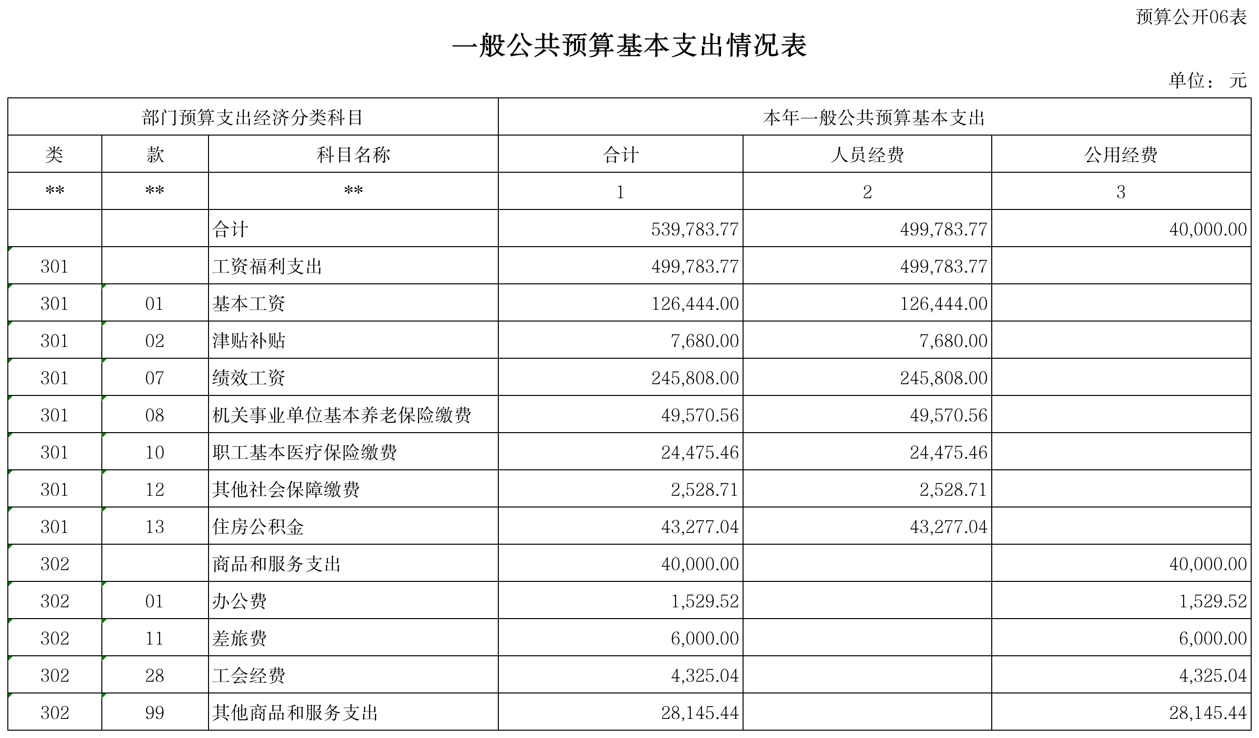 六、表6 一般公共预算基本支出情况表