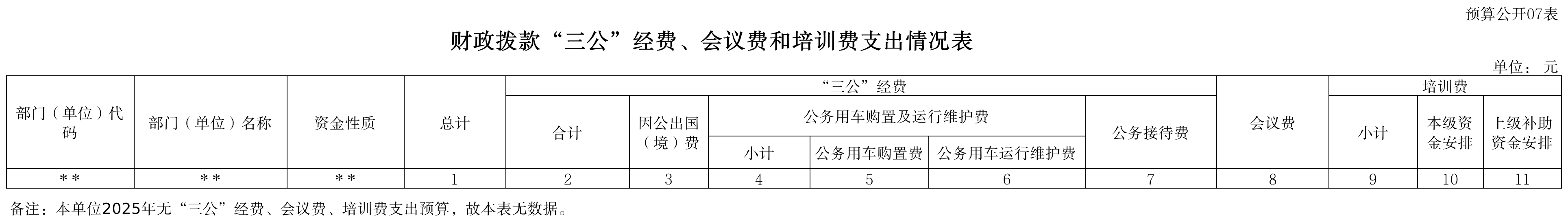 七、表7 财政拨款“三公”经费、会议费和培训费