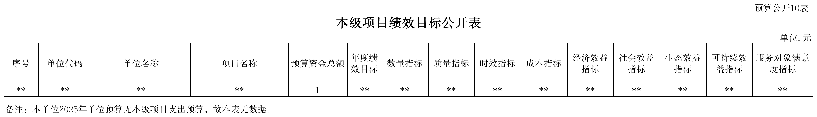 十、表10 本级项目绩效目标公开表