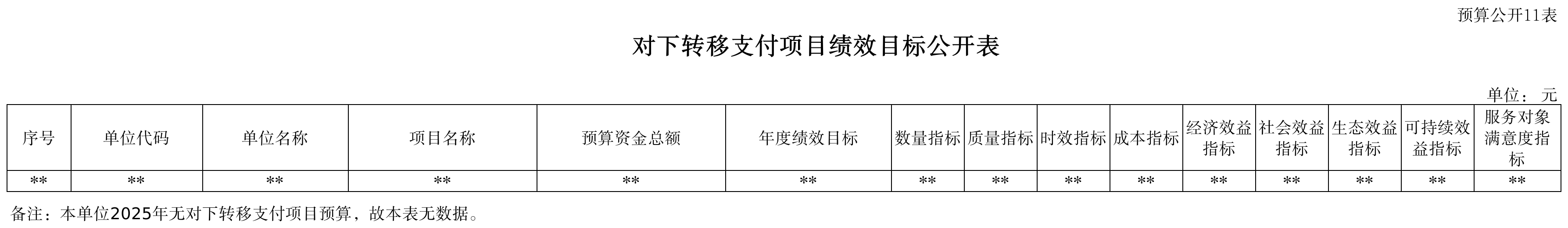 十一、表11 对下转移支付项目绩效目标公开表
