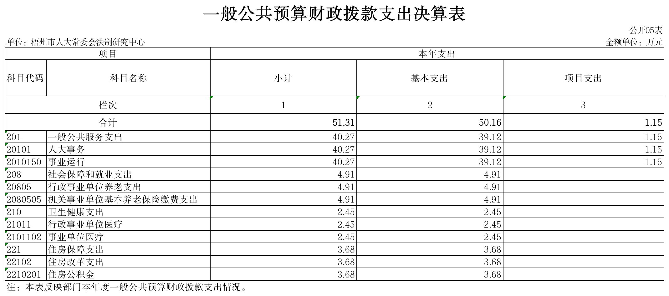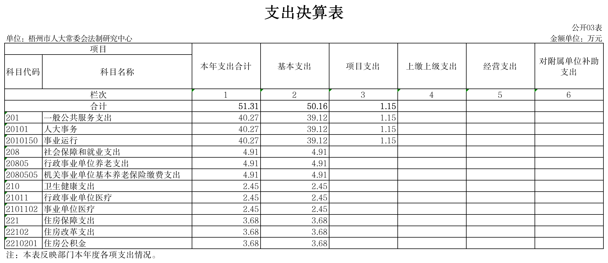 (此部分另附表格,详见《附件:梧州市人大常委会法制研究中心2023年度单位决算公开表》)