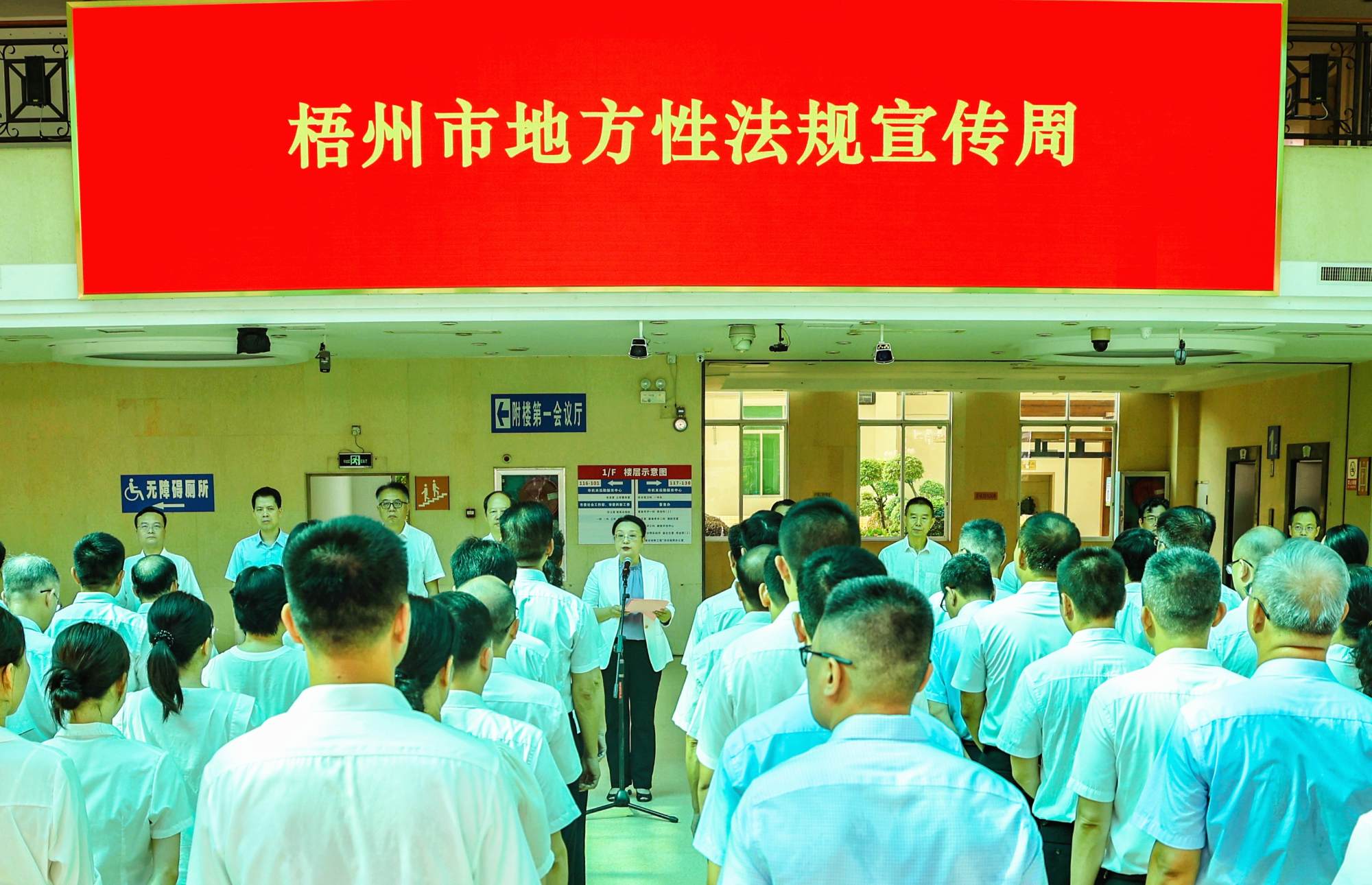 7月7日,市人大常委会、市政府在市联合办公大楼一楼大堂举行2025年梧州市地方性法规宣传周活动启动仪式