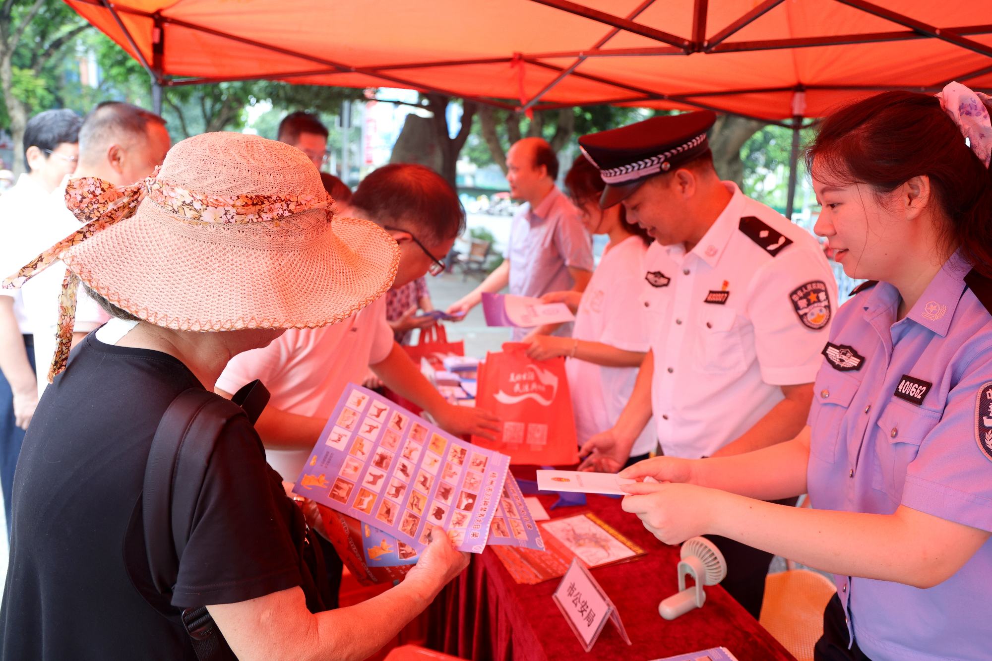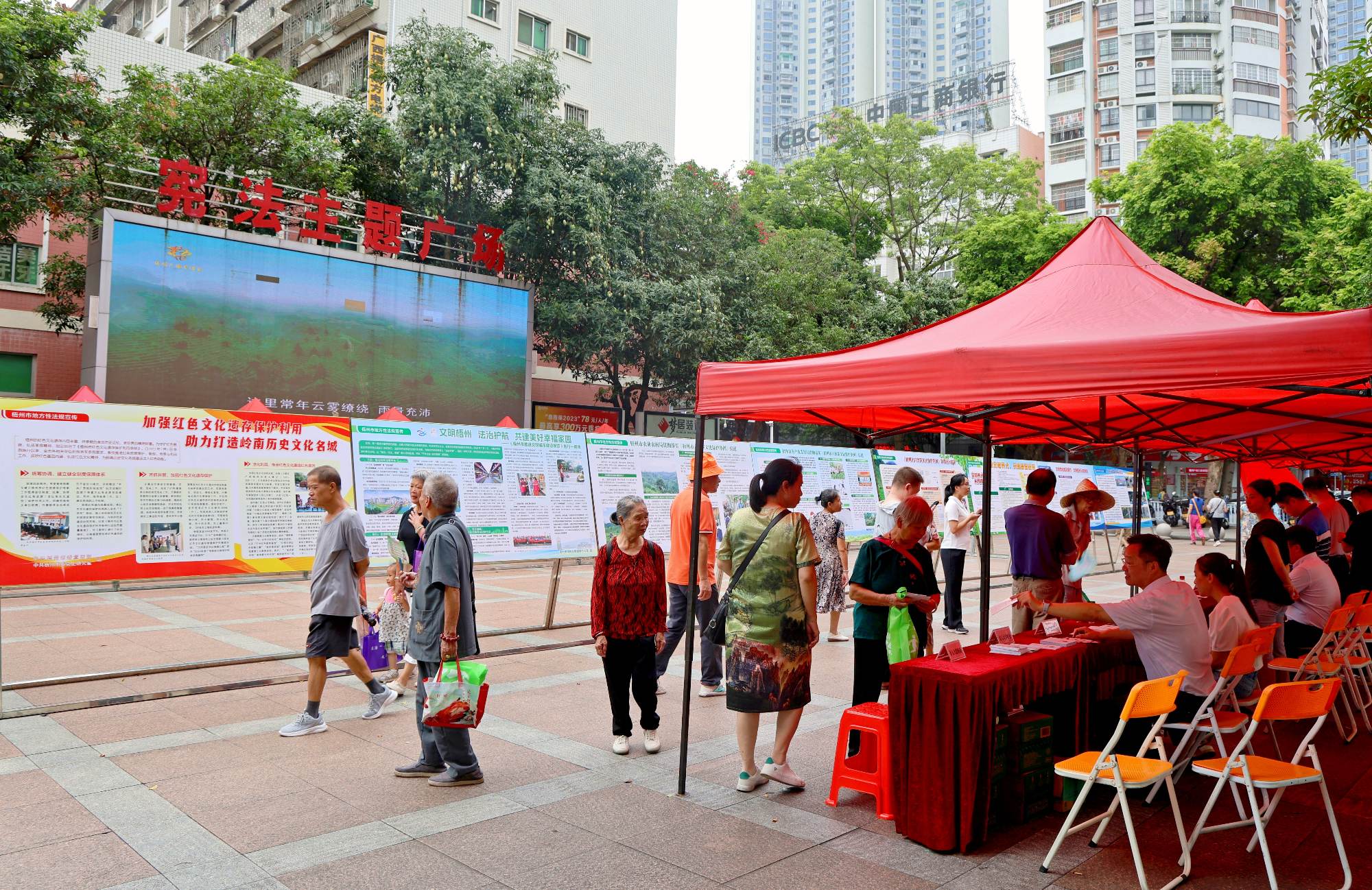 在宣传展板区,《梧州市六堡茶文化保护条例》和《梧州市红色文化遗存保护利用条例》的图文吸引了不少群众驻足。