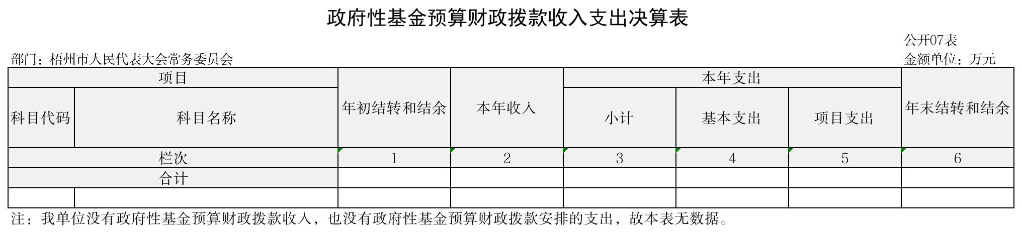 梧州市人民代表大会常务委员会2024年度政府性基金支出年初预算为0.00万元,支出决算为0.00万元,完成年初预算的0.00%。