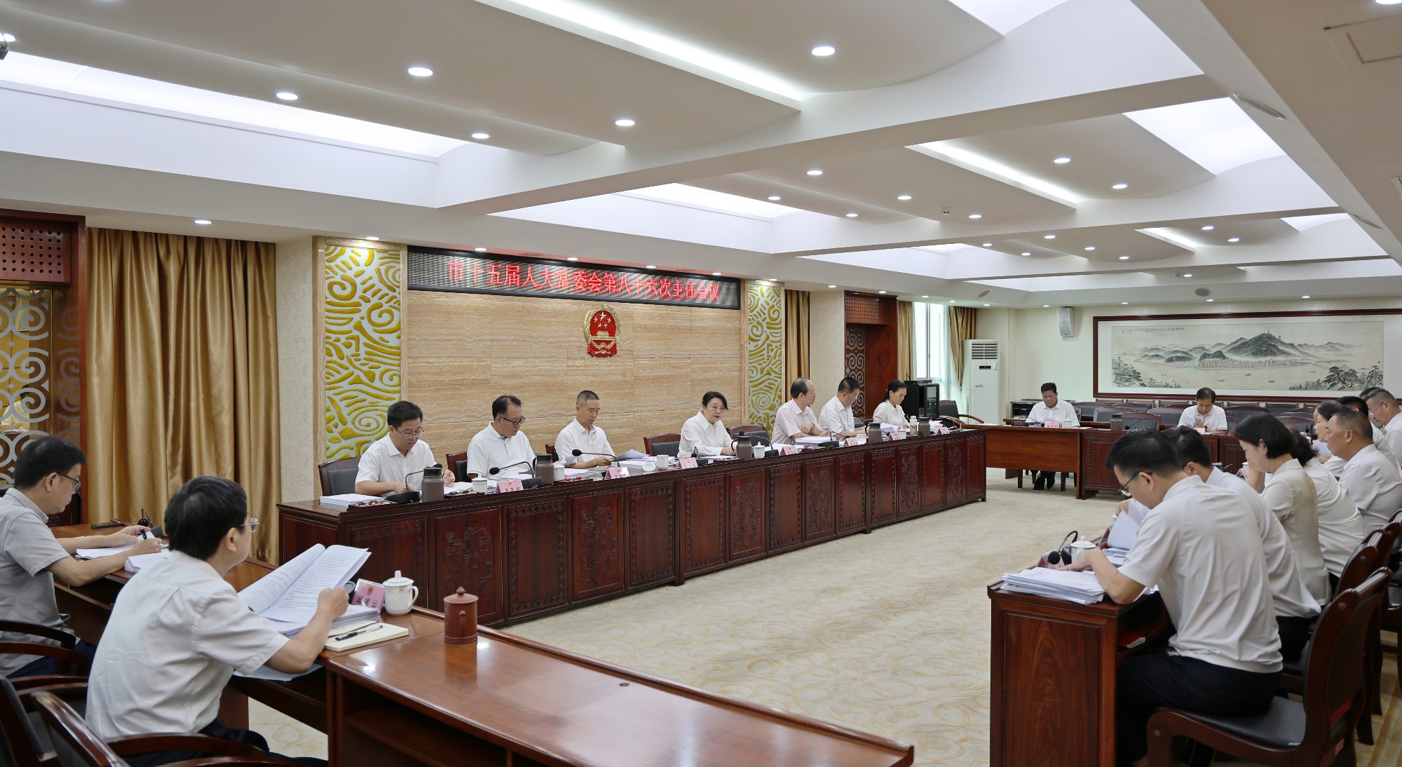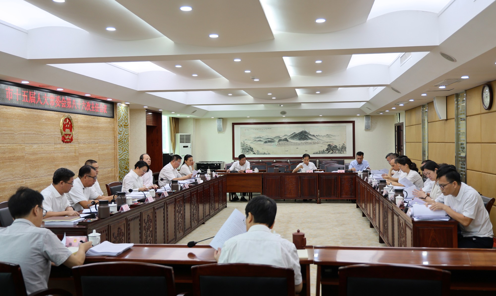 会议研究了市十五届人大常委会第三十次会议议程草案和日程安排草案,研究调整会议召开时间,决定市十五届人大常委会第三十次会议将于10月20日召开,会期1天;研究《市人大常委会及机关制度汇编》,同意将有关制度书面印发常委会会议;听取了有关专(工)委、办事机构关于市十五届人大常委会第三十次会议议程准备情况的汇报,同意将相关报告、决定、条例提请常委会议审议;听取了有关专委对市人民政府关于常委会会议审议意见研究处理情况报告的审议情况汇报,同意将相关报告书面印发常委会会议。
