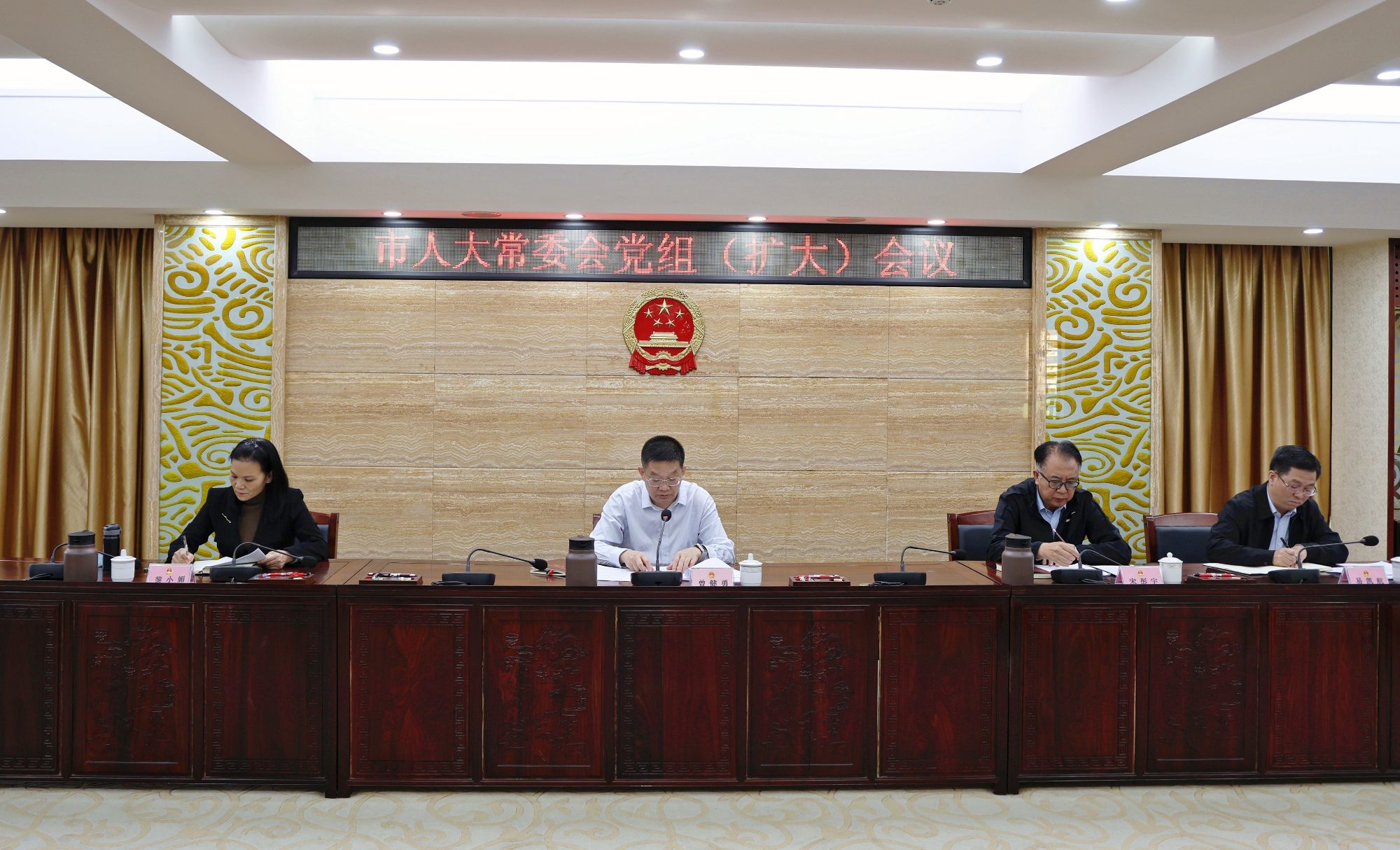 12月8日,市人大常委会党组召开(扩大)会议,传达学习习近平总书记近期重要讲话精神和自治区、我市有关会议及文件精神,研究贯彻落实措施。受市人大常委会主任、党组书记谭秀洪委托,副主任、党组成员曾健勇主持会议。
