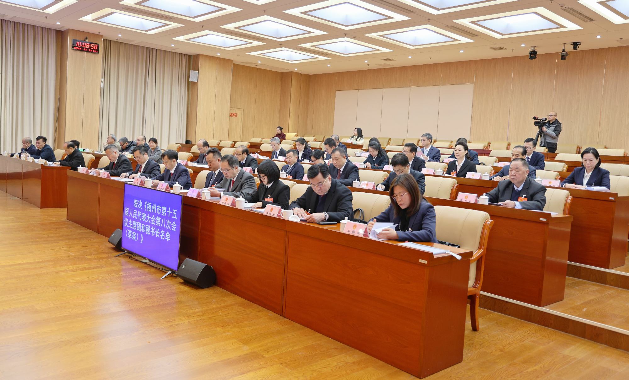 会议听取市人大常委会办公室关于市十五届人大八次会议筹备工作情况的报告;听取审议并表决通过市人大常委会代表资格审查委员会关于个别代表的代表资格的报告;审议并表决通过《梧州市第十五届人民代表大会第八次会议主席团和秘书长名单(草案)》《梧州市第十五届人民代表大会第八次会议议案审查委员会组成人员名单(草案)》,同意提交市十五届人大八次会议预备会议表决;审议并表决通过有关人事任免事项。
