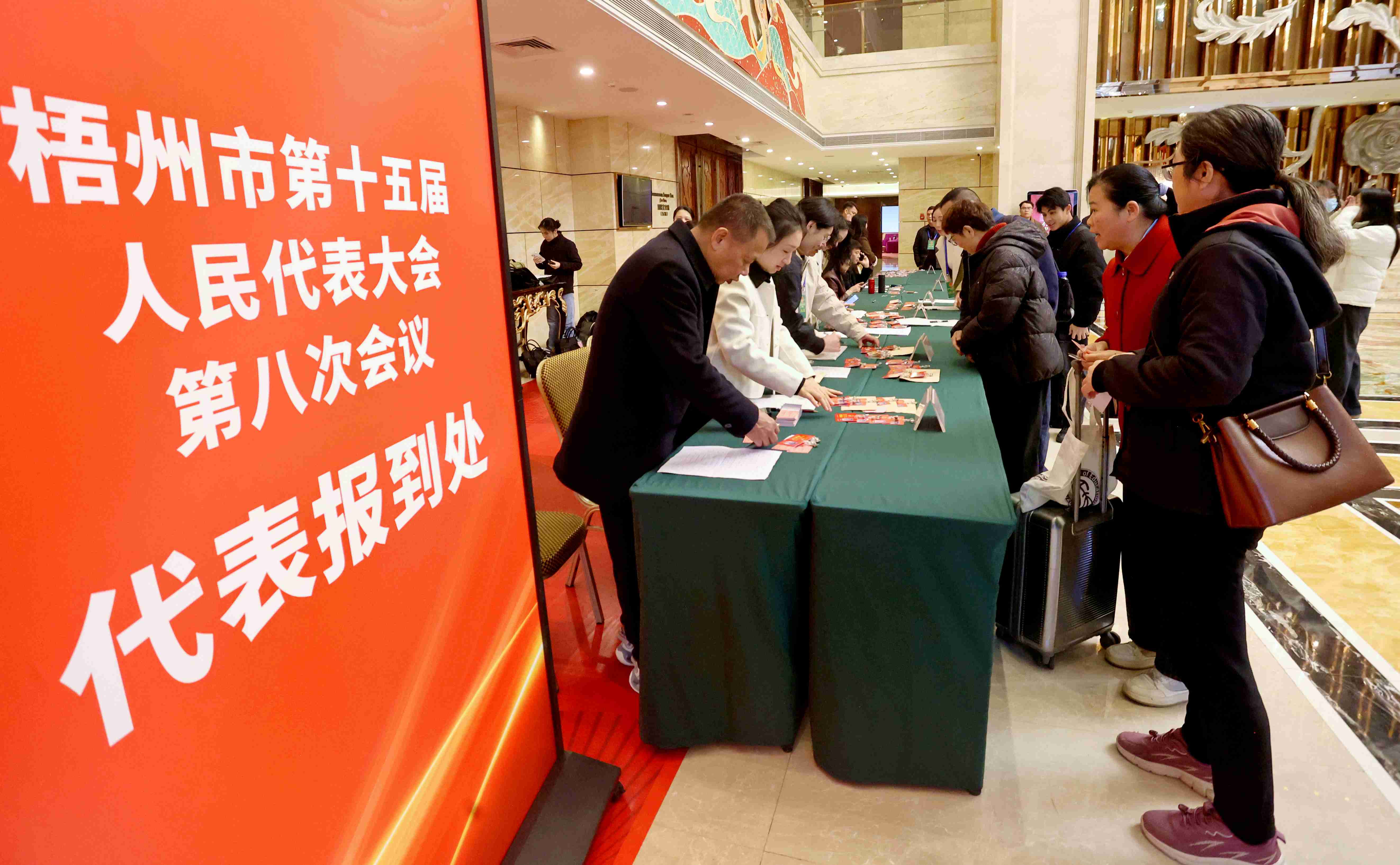 “这是您的证件,请拿好。”在大会报到处,代表们在工作人员的引导下签到、领取相关资料后,郑重地将出席证别在胸前。不少代表刚完成报到手续,便迫不及待地交流起带来的议案建议,话里话外、字里行间满是对梧州经济社会高质量发展的深入思考和对民生实事的深切关注。