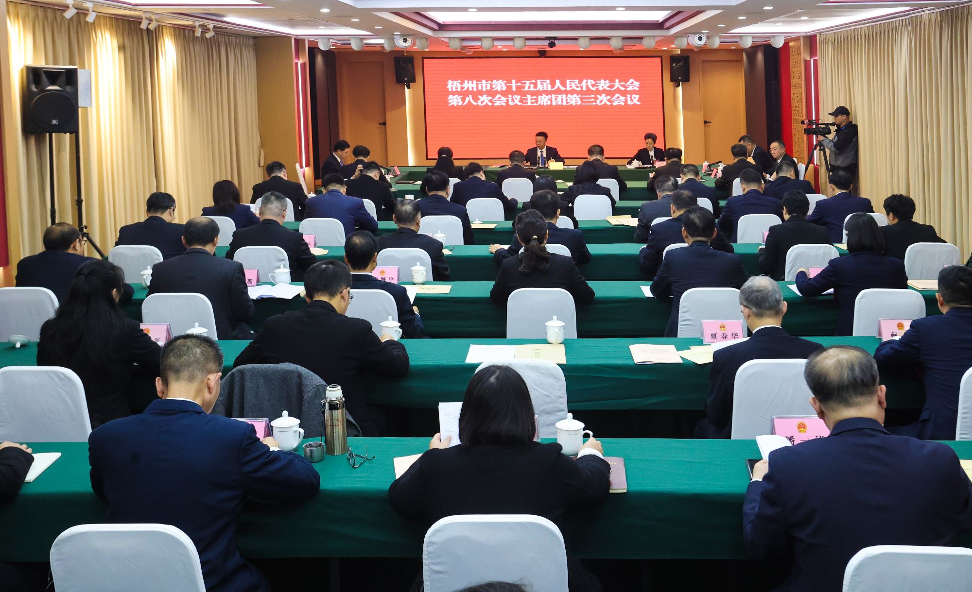 2月11日下午,市十五届人大八次会议主席团第三次会议在市党群服务中心政治生活馆举行。
