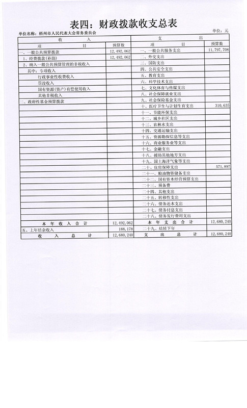 2016年市人大常委会公共财政拨款支出预算12,680,240元比去年同期增加575,773元,同比增长4.76%。