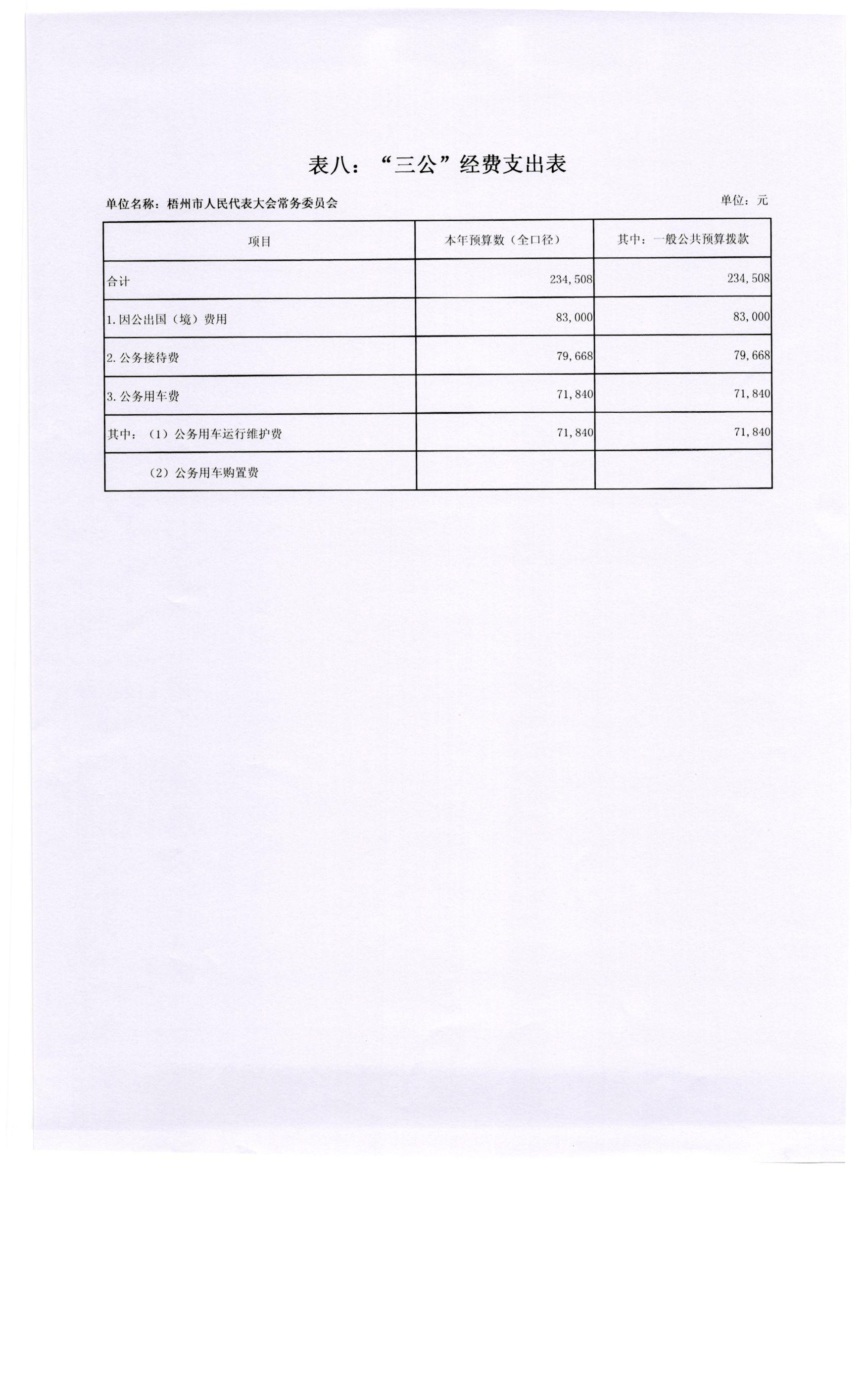 (二)项目支出2,031,000元,占支出总预算16.02%,由于工作安排不同,与去年同期相比减少896,000元,同比减少30.61%。主要是用于完成市人大常委会各项专项业务工作而发生的项目支出,包括:全国、全区、全市人大代表全年学习、视察、调研、履职工作经费,人大及其常委会理论研究和人大新闻宣传工作经费,市人大常委会依法履职,开展有关法律监督和工作监督业务经费,及六个专委、三个办事机构工作经费,对外交流联络工作经费等。