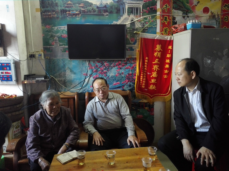 谢凌云、徐远洲向“水上民歌”传承人彭桂英了解情况。