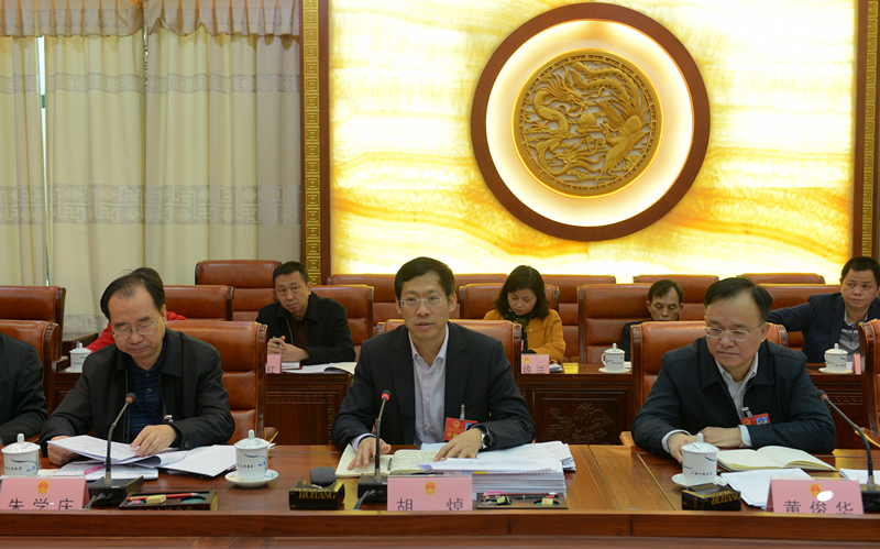 胡焯在发言时表示,十分赞同自治区政府工作报告、自治区人大常委会工作报告自治区“两院”工作报告。过去一年,全区经济社会发展取得了不错的成绩,可归纳为发展好、民生好、扶贫好、治安好。胡焯说,水是生命之源,依法管水治水是非常好的法治理念,制定饮用水水源保护条例切合广西实际,功在当代,利在千秋。2016年,自治区“两院”忠实履行宪法法律赋予的职责,克服案多人少等突出矛盾,严格依法办案,为维护社会和谐稳定做出了积极贡献。他建议,自治区法院工作报告的语言要更加严谨,表述要更加规范。他还表示,将一如既往地关注和支持梧州工作,为梧州发展作出应有的努力。