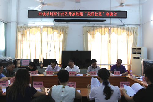 在座谈会上,谢凌云听取了创建“美好社区”活动开展情况汇报,并与社区工作人员讨论问题清单解决办法,肯定了南中社区在创建“美好社区”活动中取得的成效。他指出,在深化“双报到”活动创建“美好社区”中,“双报到”单位要态度端正、积极开展活动,社区和各责任单位要明确目标,满足居民所需所盼;要依托“宜居社区、平安社区、人文社区、和谐社区、智慧社区”五大创建载体统筹推进,抓好落实,助推美丽梧州建设;对社区提出的需要解决的问题,认领后要加强协调、尽快解决,为社区和居民办实事。