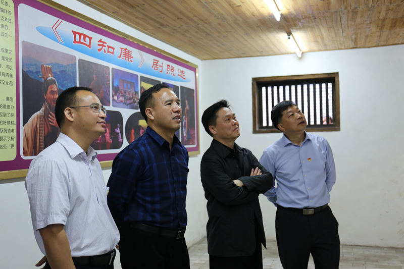 图为:调研组考察藤州镇人大宣传和代表履职平台建设情况。