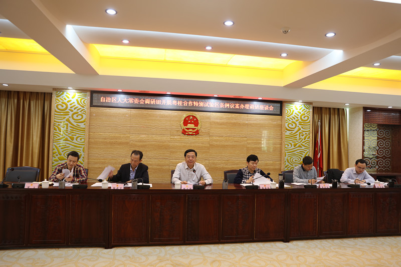 调研组指出,制定《粤桂合作特别试验区条例》的议案提得非常及时,非常有必要,粤桂合作特别试验区从启动建设至今,所遇到的问题迫切需要从顶层设计去解决,从而更好地保护和利用各项改革创新成果,保障试验区稳健发展。制定该项地方法规要明确重点,以问题为导向着力解决发展过程中遇到的实际问题;要抓准路径,在充分吸纳试验区广东、广西两大片区开发建设有关经验的基础上出台条例。