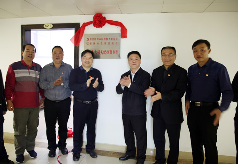 4月15日上午,驻市人大机关纪检监察组举行揭牌仪式,市纪委副书记、监委副主任韦优,市人大常委会党组成员、机关党组书记、常委会秘书长阳永煊,市人大机关党组成员、常委会副秘书长张志泉和驻市人大机关纪检监察组组长叶留梧共同揭牌。
