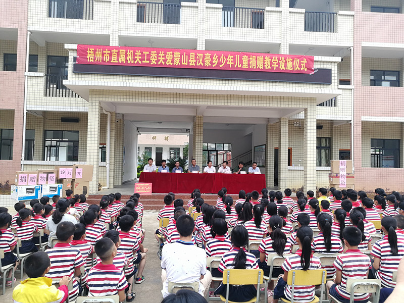 据悉,梧州市直属机关工委给汉豪乡所辖的6所小学共捐赠课桌、电脑、数码复印一体机、空调、室外LED显示屏等价值19万元的教学设施。