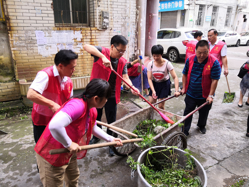 市人大常委会机关积极开展 “四城联创”活动, 8月30日,机关党组组织党员干部到南中社区开展市容环境卫生大扫除和文明交通劝导。市人大常委会党组成员、秘书长,机关党组书记阳永煊,市人大常委会机关党组成员、副秘书长梁冰、张志泉、马涌涛参加活动。