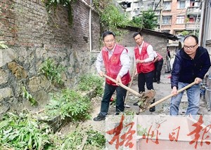 市人大常委会副主任谢凌云来到万秀区南中社区,与党员干部、社区群众一起对五坊路背街小巷的卫生死角、积存废杂物及阻碍视线的绿植进行集中整治清理,并对南堤路、居仁路等网格路段周边环境卫生进行巡查整治。谢凌云指出,有关单位、执法部门以及社区干部要结合“四城联创”扎实推进城市环境综合整治,采取有效措施,把日常保洁和监督管理工作做细做实。针对乱扔烟头纸屑、沿街商铺乱摆乱放、车辆乱停放等不文明行为,要充分发动党员干部、社区居民、志愿者等力量,抓好劝导和整治,以良好形象迎接宝石节的举办。