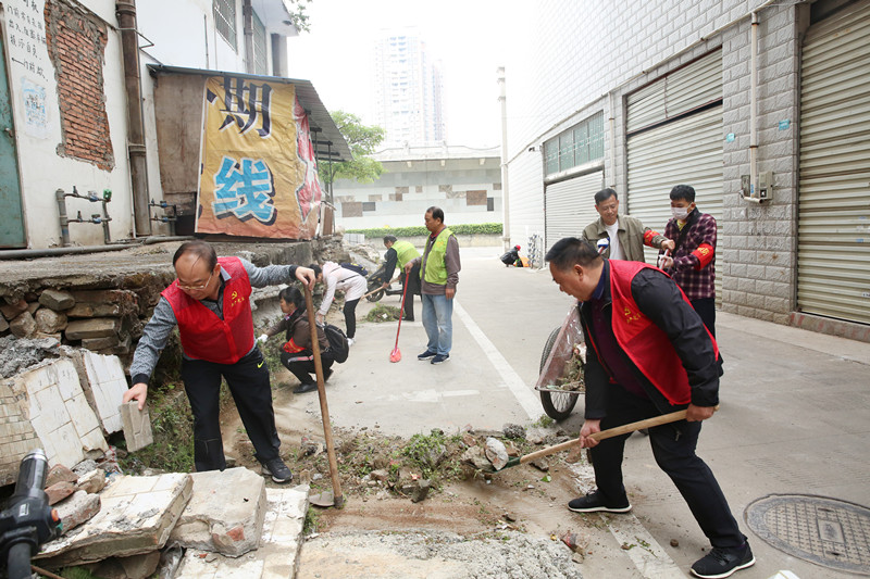 李杰云来到万秀区富民街道枣冲社区,和社区党员干部群众一起,开展清洁大扫除。他手持铁铲,带头清理居民楼旁小巷的杂草、垃圾、砖块、废旧杂物,一边清理一边叮嘱社区工作人员要及时对该处进行绿化美化提升,增种景观绿植,打造“微花园”。随后,他沿枣冲路、富江小游园、怡景市场、紫荆花园小区步行检查,逐一指出社区及农贸市场周边乱搭乱盖、车辆乱停、广告招牌违规设置、店铺占道经营、垃圾桶设置不规范、绿化带亟待提升等问题,要求城区和市相关部门联合行动,加强片区执法和规划管理,大力整治富江小游园、怡景市场一带摊档违规占道摆卖、居民楼乱搭建等突出问题。