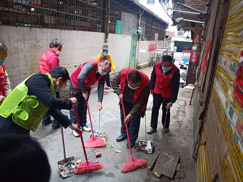 3月6日上午,市人大机关党员干部到万秀区南中社区参加抗疫爱卫“五大清洁行动”,开展社区环境、农贸市场环境卫生清洁工作。