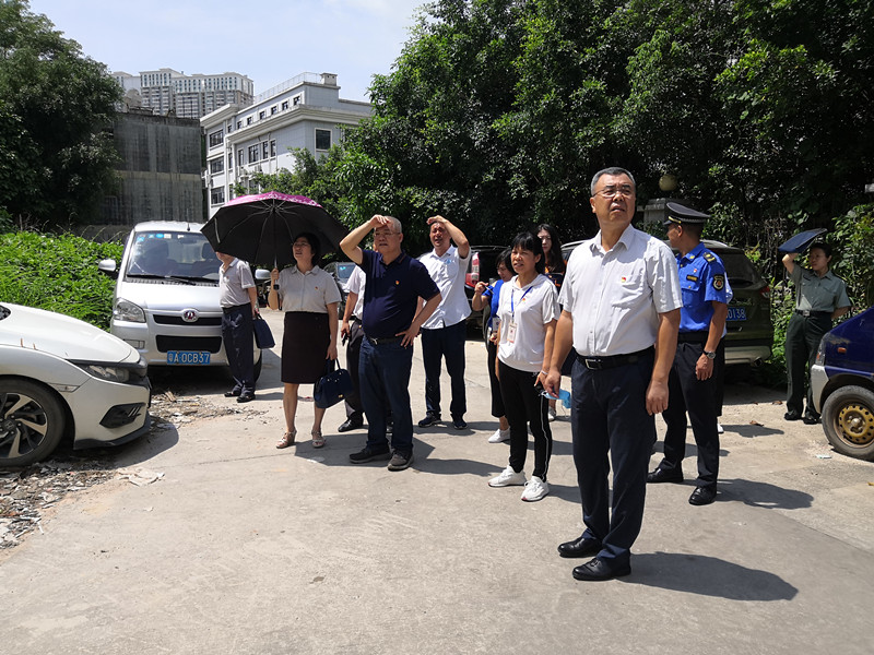 在两广社区,程权与社区、“双报到”单位党员干部传达学习了《梧州市“四城联创”大走访、大整改、大检查行动方案》,并对社区第三季度党建设工作进行了研究和部署。随后,程权深入到两广社区巡查背街小巷环境和秩序情况,到居民户宣传我市开展“四城联创”活动听取群众的诉求,并实地考察“巴黎·春天小区”党支部建设情况。