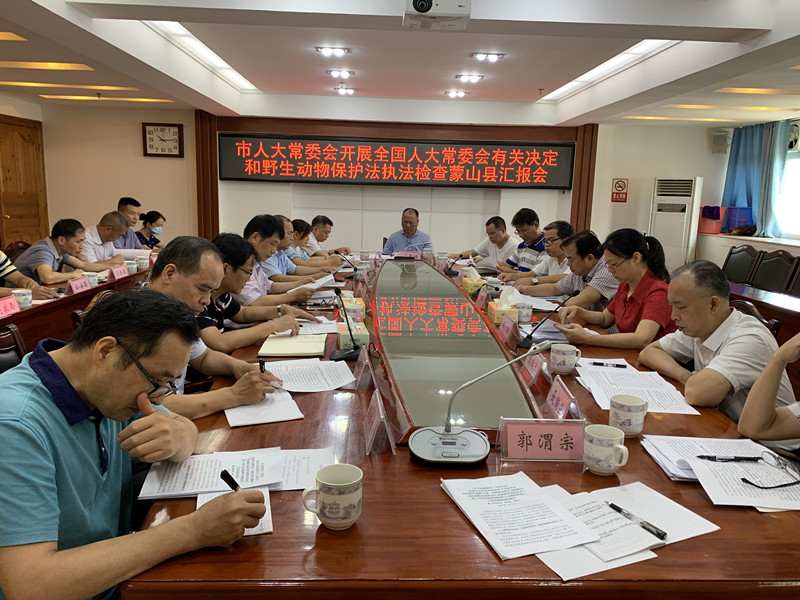 7月1日,市人大常委会副主任叶剑强带领市人大常委会执法检查组到蒙山县开展《全国人民代表大会常务委员会关于全面禁止非法野生动物交易、革除滥食野生动物陋习、切实保障人民群众生命健康安全的决定》和野生动物保护法执法检查。