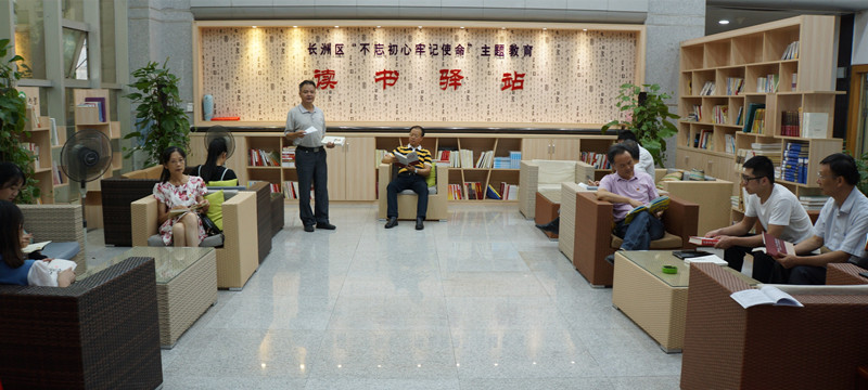 7月9日晚上,长洲区人大机关党支部在长洲区“两学一做”学习教育读书驿站,开展以“不忘初心、坚定信念”为主题的读书活动。机关党支部书记黄少南以“党风廉政建设”为主题为机关支部全体党员上党课,从提高思想认识、增强工作作风、规范政治生活等方面提出了要求。