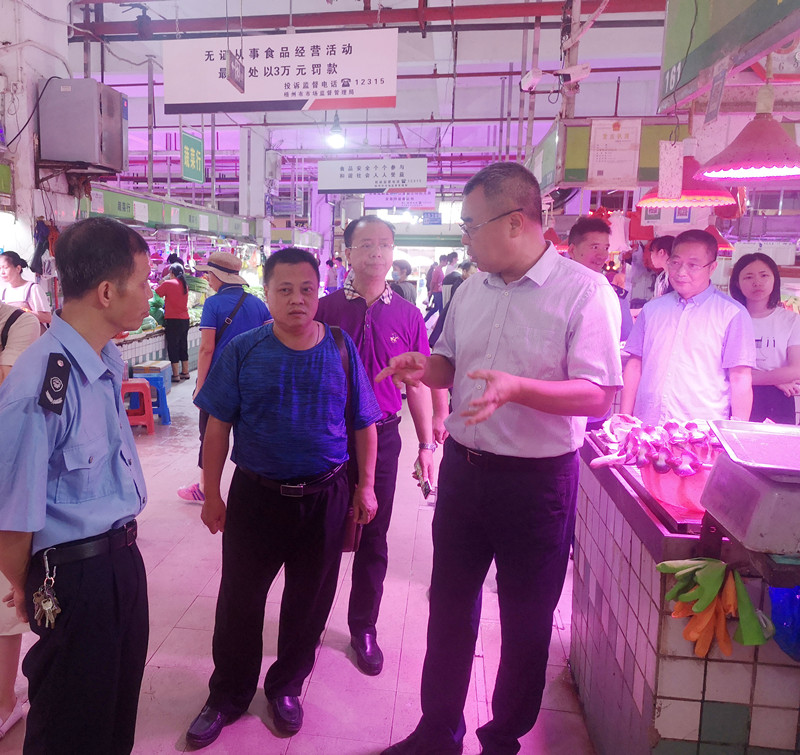 随后,调研组考察了两广新城市场、新龙市场、福兴市场和大塘市场,对市场及周边环境整治、消防通道和市场摊位的规范设置等提出了工作建议。调研组指出,开展《梧州农贸市场管理条例(草案修改稿)》立法调研,就是要从立法源头上重点解决当前农贸市场规划滞后、建设管理主体不明确和管理水平不高等问题,推动有关部门以产品放心、环境舒适、方便快捷为目标,开展农贸市场建设管理工作,为老百姓提供良好的购物环境和食品安全保障。