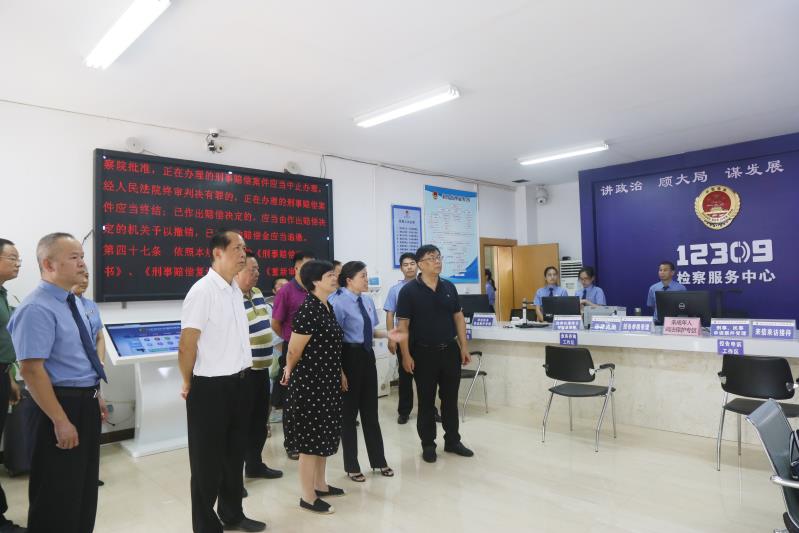 执法检查组考察了龙圩区人民检察院12309检察服务中心、未成年人心理疏导区、新时代知识学习室等功能区域,观看了由龙圩区检察院制作的未成年人检察工作专题片《“七彩·未检”——用法治托起孩子的七彩明天》。