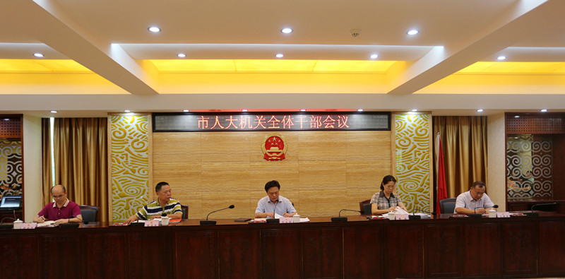 9月30日,市人大常委会机关召开全体干部会议,对深化“学用政策促发展”活动进行再动员再布置,逐项细分项目,明确任务和责任,进一步推进机关作风建设工作。市人大常委会党组成员、机关党组书记,常委会秘书长、办公室主任阳永煊主持会议。