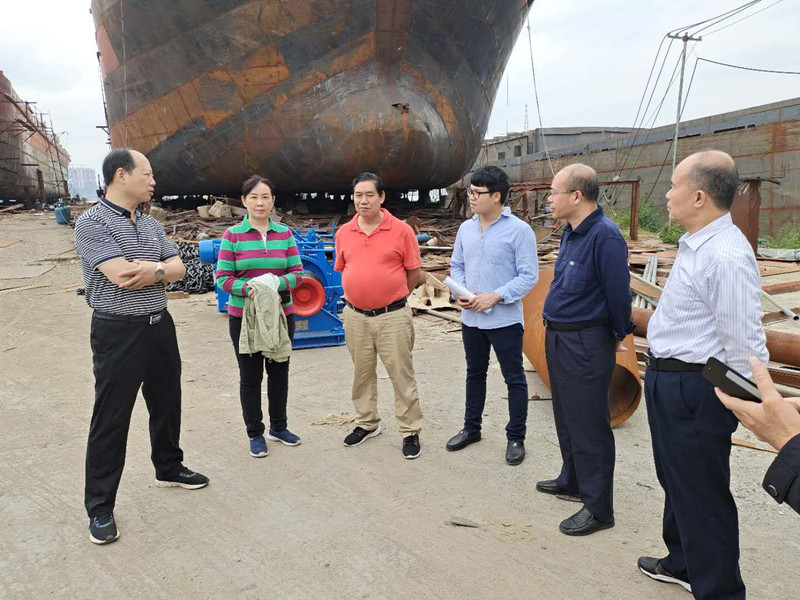 图为方芳(左二)在藤县金达船厂调研。