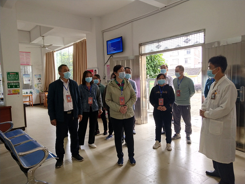 图为方芳与基层代表、干部群众在岑溪市安平镇卫生院了解疫情防控工作和公共卫生设施建设情况。