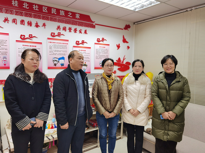 图为防城区考察组到万秀区城北街道桂北社区人大代表联络站考察交流。