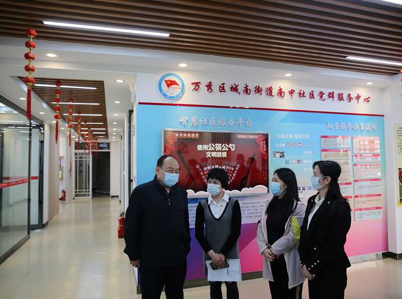 2月3日,市人大常委会主任谢凌云到万秀区南中社区,调研督导社区“两委”换届选举工作,并与社区工作人员、“双报到”单位党员一同开展“城乡环境大扫除、干干净净迎新春”爱国卫生运动。