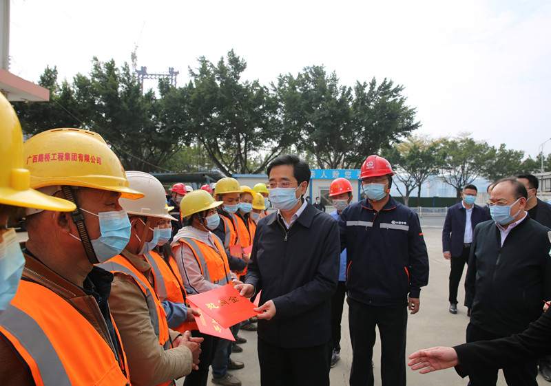 1月30日,自治区人大常委会党组副书记、副主任、自治区总工会主席张晓钦到我市,代表自治区党委、自治区政府亲切看望慰问全国优秀党务工作者、广西工匠、疫情防控一线人员、困难党员和困难群众,并开展自治区总工会2021年迎新春送温暖、稳岗留工专项行动暨慰问就地过年外来务工人员活动。市委书记全桂寿、市长钟畅姿分别陪同参加活动。